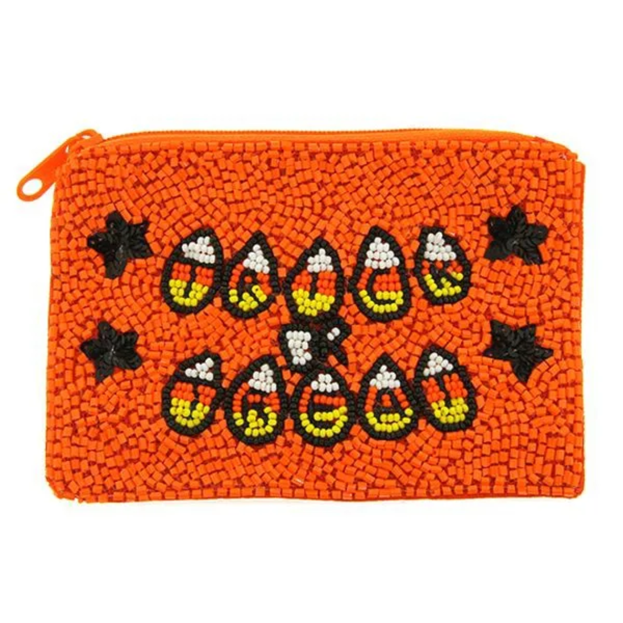 Add a playful touch to your Halloween accessory collection with the Candy Corn Delight coin purse. This meticulously handcrafted purse is adorned with intricate beadwork showcasing classic candy corn motifs, set against a vibrant orange background with black stars. Compact yet spacious, it’s perfect for keeping your essentials secure while celebrating the spooky season. Ideal for gifting or adding a festive flair to your outfit, this purse combines practicality with charm.