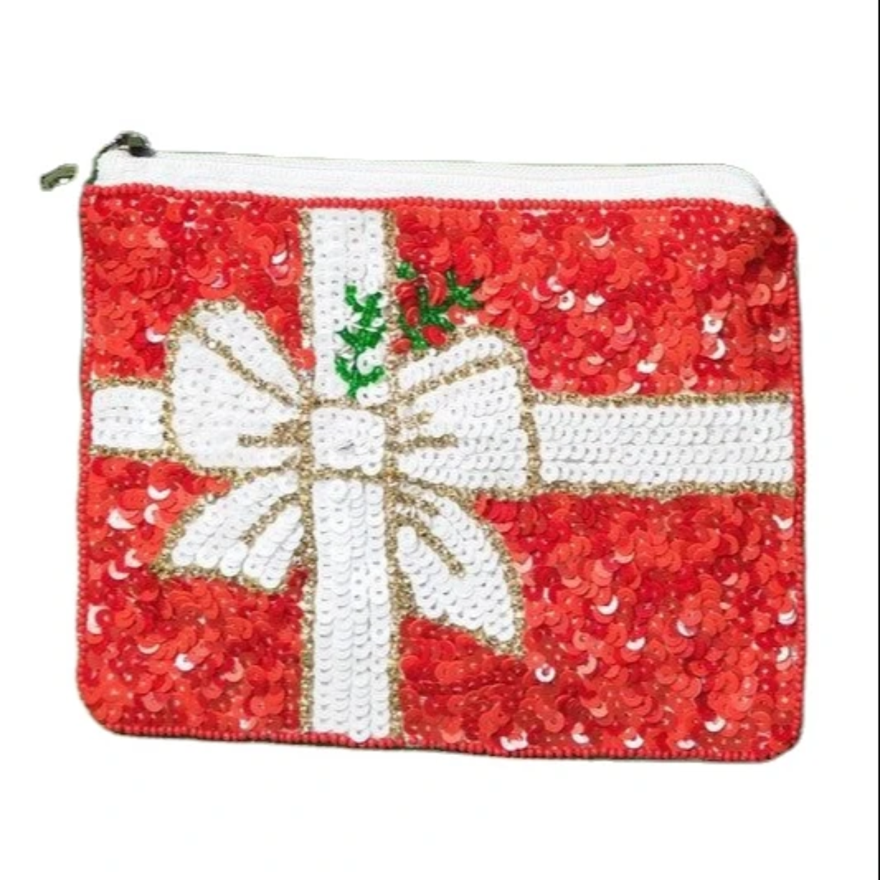 Unwrap joy with the Festive Gift Coin Purse! Designed to resemble a beautifully wrapped present, this purse features shimmering red sequins, a golden and white bow, and a touch of green holly for a festive flair. Ideal for carrying your coins, cards, or small trinkets, it’s perfect for the holiday season. Whether you’re gifting it to someone special or adding it to your collection, this coin purse is the perfect way to keep the festive spirit alive!